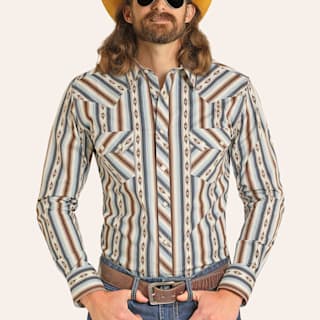 Rock & Roll Denim Men's Brown & Blue Serape Print Long Sleeve Pearl Snap Western Shirt
