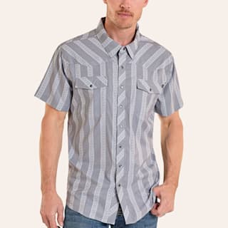 Rock & Roll Denim Men's Gray Aztec Stripe Print Pearl Snap TEK Western Shirt