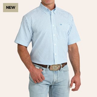 Cinch Men's Arenaflex White & Blue Geo Print Shirt