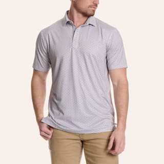 Rafter C Men's Gray & White Wallpaper Geo Print Pearl Snap Polo Shirt