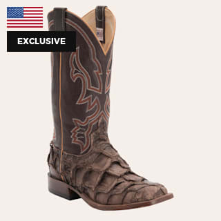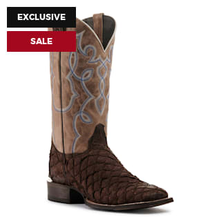 Cavender’s Men’s Chocolate and Coffee Pirarucu and Leather Wide Square Toe Exotic Cowboy Boots