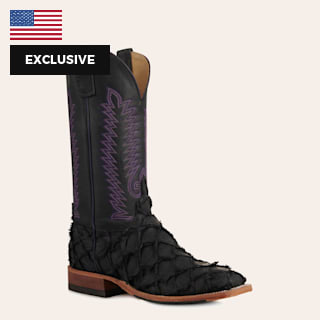 Cavender's Men's Black Pirarucu & Cowhide Wide Square Toe Exotic Cowboy Boots