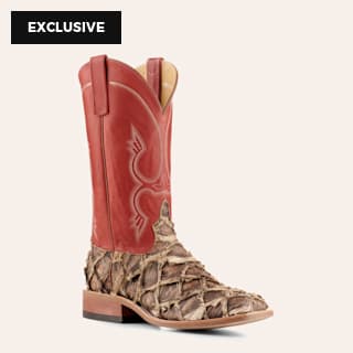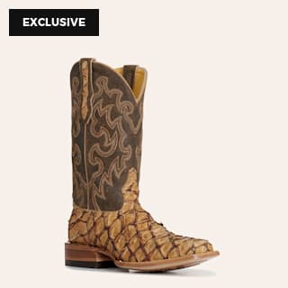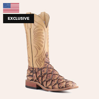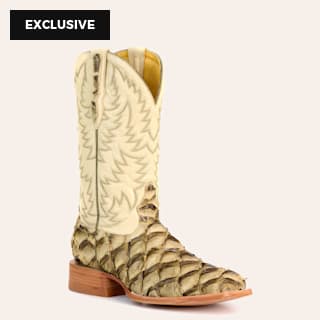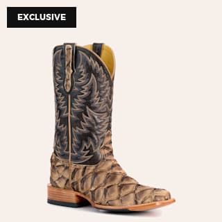 Cavender's Men's Sand Pirarucu & Cowhide Wide Square Toe Exotic Cowboy Boots