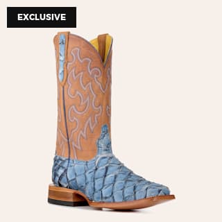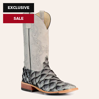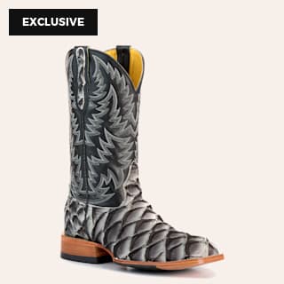 Cavender’s Men’s Slate Pirarucu and Bone Wide Square Toe Exotic Cowboy Boots