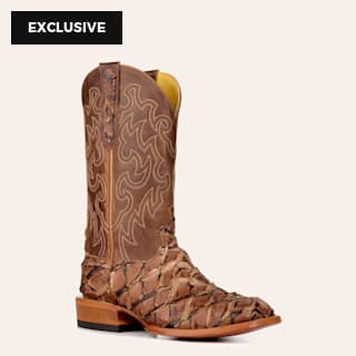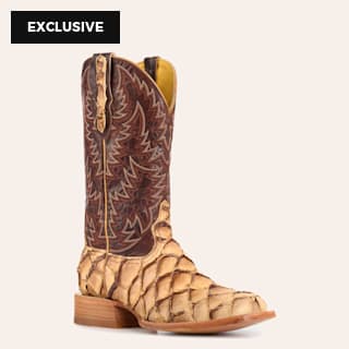 Cavender’s Men’s Brass and Caramel Pirarucu Wide Square Toe Exotic Cowboy Boots