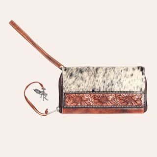 Nocona Brown and Tan Emmy Tooled Leather and Hair On Cowhide Wristlet Wallet