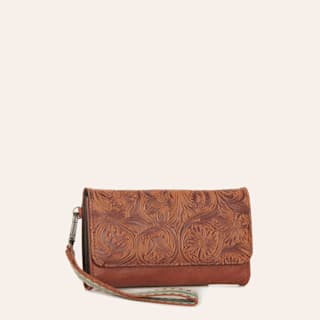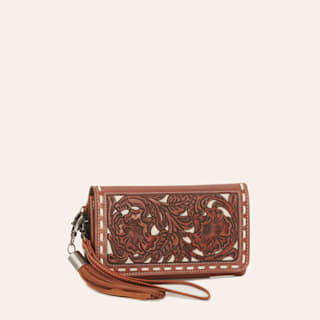 Nocona Amelia Cinnamon Floral Tooled Wristlet Wallet