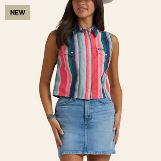 Wrangler Women's Multicolor Stripe Print Sleeveless Pearl Snap Western Shirt