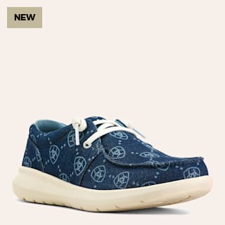 Ariat Women's Hilo Blue Denim Logo Print Knit Moc Toe Shoes