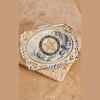 Montana Silversmiths Two Tone Cowboy Cameo Antiqued Star Belt Buckle