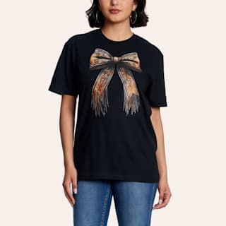 Lattimore Women's Black Leather Bow Graphic T-Shirt