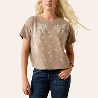 Ariat Women's Taupe Gray Paisley Graphic Cropped T-Shirt