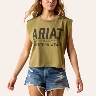 Ariat Women's Faded Army Green Authentic Wear Graphic Muscle Tank