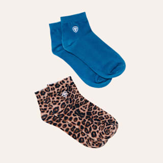 Ariat Ladies’ Leopard Print and Sky Blue Wild Thing 2-Pack Ankle Socks