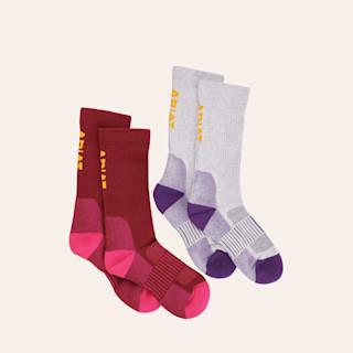 Ariat Women's AriatTEK Pink & Purple 2-Pack Performance Crew Socks
