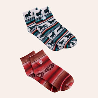 Ariat Women's Serape & Horses 2-Pack Quarter Crew Socks