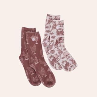 Ariat Women's Chestnut & Cream Barnyard Print 2-Pack Crew Socks