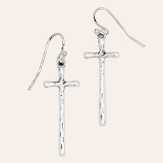 Western Gems Silver Plated Hammered Cross Dangle Earrings