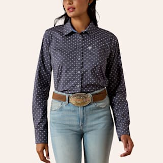 Ariat Women's Kirby Navy Horseshoe Print Long Sleeve Shirt