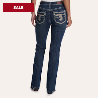 Rock & Roll Cowgirl Women's Dark Wash Mid Rise Bootcut Riding Jeans