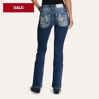 Miss Me Women's Horseshoe Aztec Medium Wash Mid Rise Bootcut Jeans