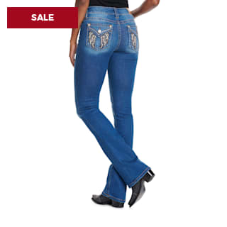 Sailey Women's Medium Wash Wings Mid Rise Boot Cut Jeans