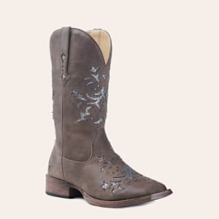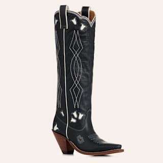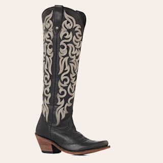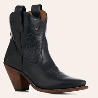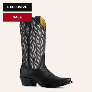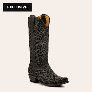 Cavender’s Women’s Leather Black with Black Cross Sparkle Inlay Snip Toe Cowboy Boots