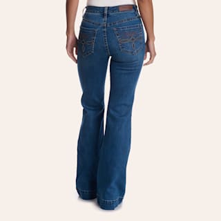 Rockin' C Women's Dark Wash Mid-Rise Flare Trouser Jeans