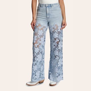 Bayeas Women's Light Wash Ultra High Rise Lace Wide Leg Jeans