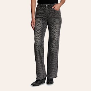 Bayeas Women's Leopard Print Black Wide Leg Jeans