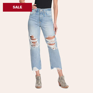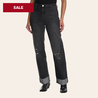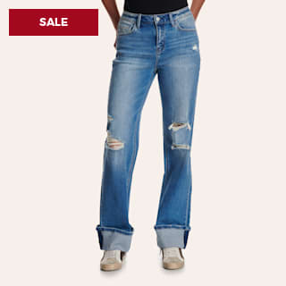Vervet Women's Distressed High Rise Slim Leg Wide Cuff Jeans