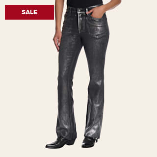 Flying Monkey Women's Black Metallic High Rise Flare Jeans