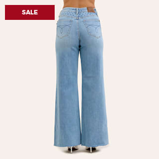 Judy Blue Women's Light Wash High Rise Front Yoke Retro Wide Leg Jeans