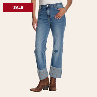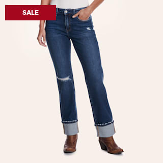 Lovervet Women's Medium Wash Distressed Straight Leg Cuffed Jeans