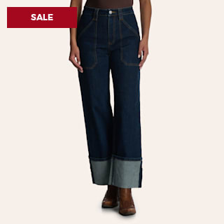 Mica Denim Women's Dark Wash High Rise Wide Leg Utility Pocket Cuffed Jeans