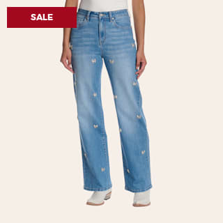 Rockin' C Women's Medium Wash Crystal Bow High Rise Wide Leg Jeans