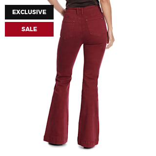 Mica Denim Women's Burgundy 5 Button Fly High Rise Super Flare Jeans