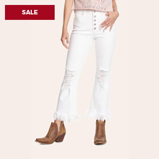 Sneak Peek Women's White High Rise Kick Flare Distressed Jeans