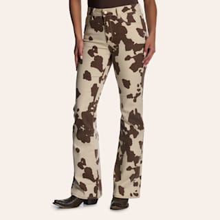 Just Black Denim Women's Brown Cow Print High Rise Bootcut Jeans