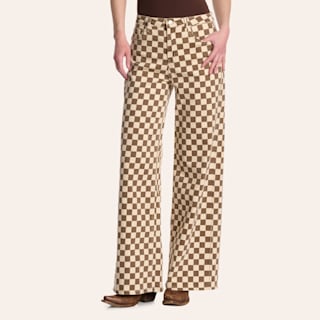 Merigold Kiss Women's Chocolate & Beige Checkerboard Print High Rise Wide Leg Jeans
