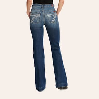 7 For All Mankind Women's Dojo Yuma Medium Wash Twisted Seam Trouser Jeans