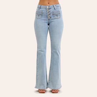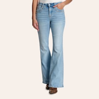 Lovervet Women's Light Wash High Rise Western Studded 33" Flare Jeans