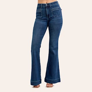 Judy Blue Women's Dark Wash High Rise Mitered Pocket Bootcut Jeans