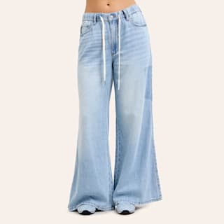 Judy Blue Featherweight Light Wash High Rise Drawstring Palazzo Jeans