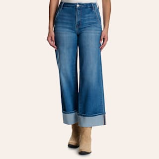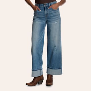 Lovervet Women's Medium Wash High Rise Slant Pocket Cuffed Wide Leg Jeans