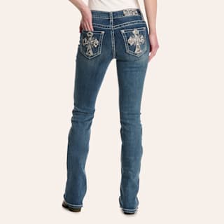 Grace In LA Women's Dark Wash Embellished Cross Mid Rise Bootcut Jeans