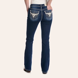 Miss Me Women's Dark Wash Sequin Longhorn Pocket Bootcut Jeans