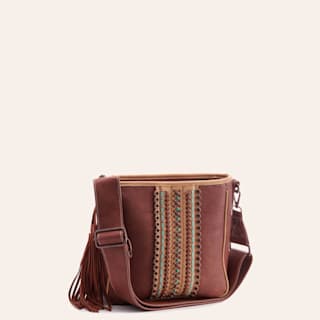 Rockin' C Tan Serape Print Tooled Leather Crossbody Bag