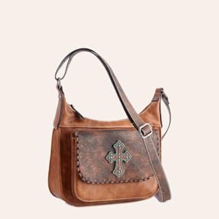 Blazin Roxx Women's Brown Tooled With Cross Concealed Weapon Shoulder Strap Purse