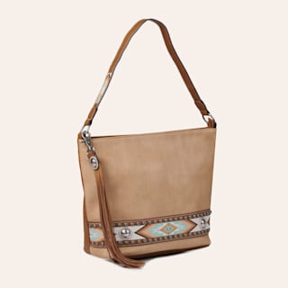 Nocona Carmen Tan with Southwest Stitching and Conchos Concealed Carry Tote Handbag